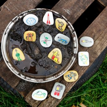 Unleash your child's imagination with Story Stones Outer Space! Let them explore endless storytelling possibilities with 13 colorful stones featuring characters, settings, and objects. Safe for ages 2 and up. Shoot for the stars today!