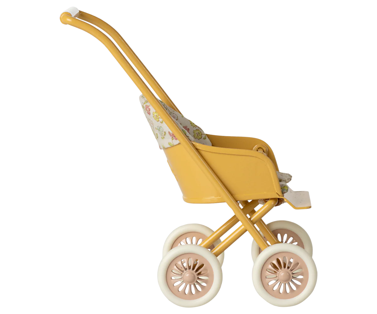 With soft floral fabric, gentle rubber wheels, and a cheerful golden frame, it’s a must-have accessory for the loving Maileg family on the go. A safety strap keeps passengers snug, while the vintage-inspired design adds just the right touch of charm to your playtime parade. 🎀🌻