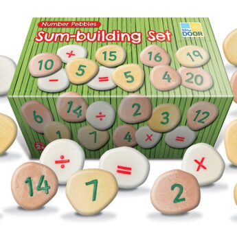 Number Pebbles Sum-Building Set (50 Pebbles) – contains two of numbers 0–20, two of operations +, – and =, one of operations x and ÷.