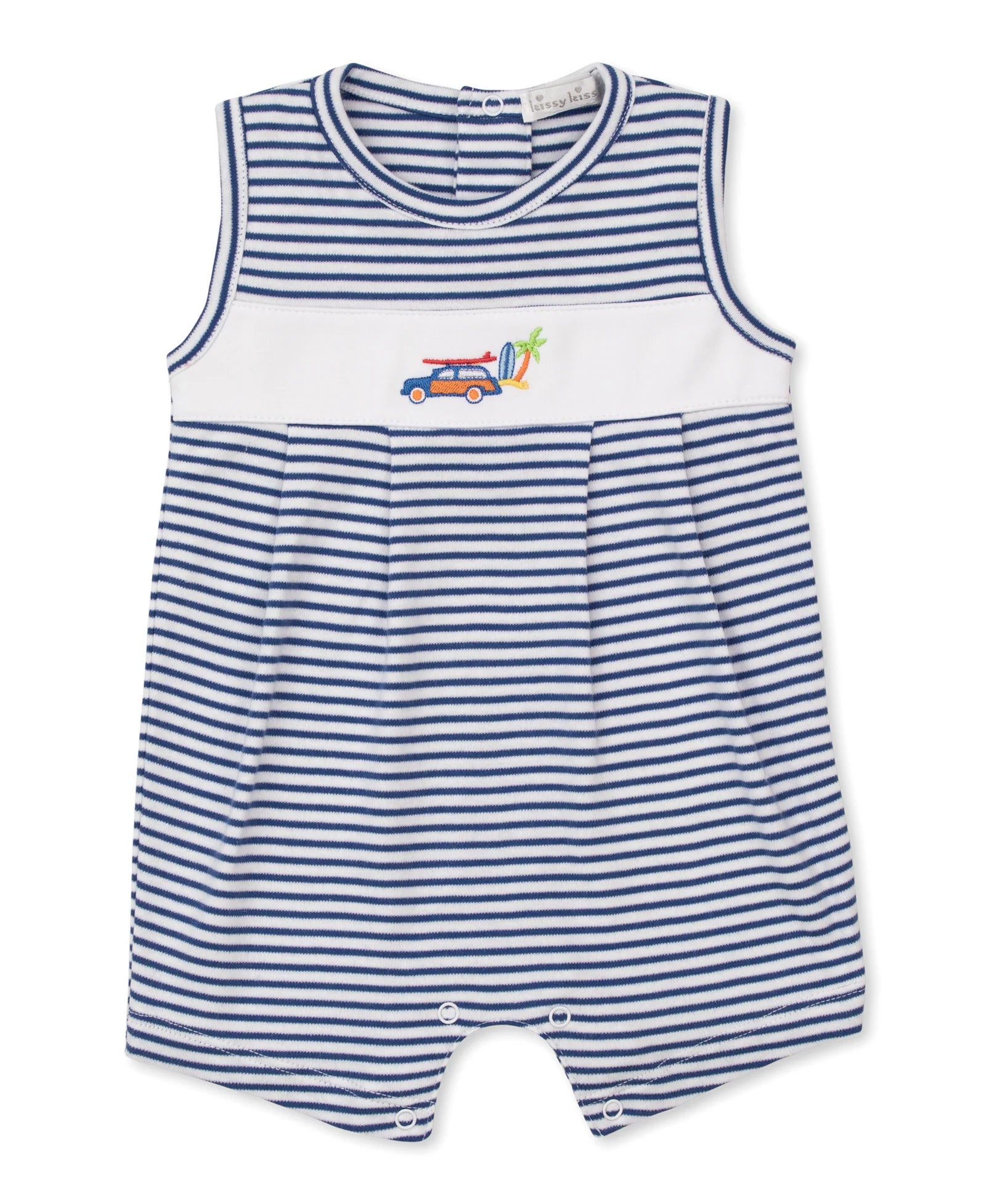 Your little beach bum will be ready for a day of sun, surf, and snuggles in the Kissy Kissy Surfing Van Sleeveless Romper! Made from the softest Peruvian Pima cotton (aka: cloud-level comfort), this romper is as breezy as a boardwalk stroll. Featuring an adorable print of retro surf vans and rolling waves, it’s perfect for your mini wave rider’s next big adventure—whether it’s conquering tummy time or catching some Z’s. Plus, with easy snap closures, diaper changes are smoother than a glassy morning swell.