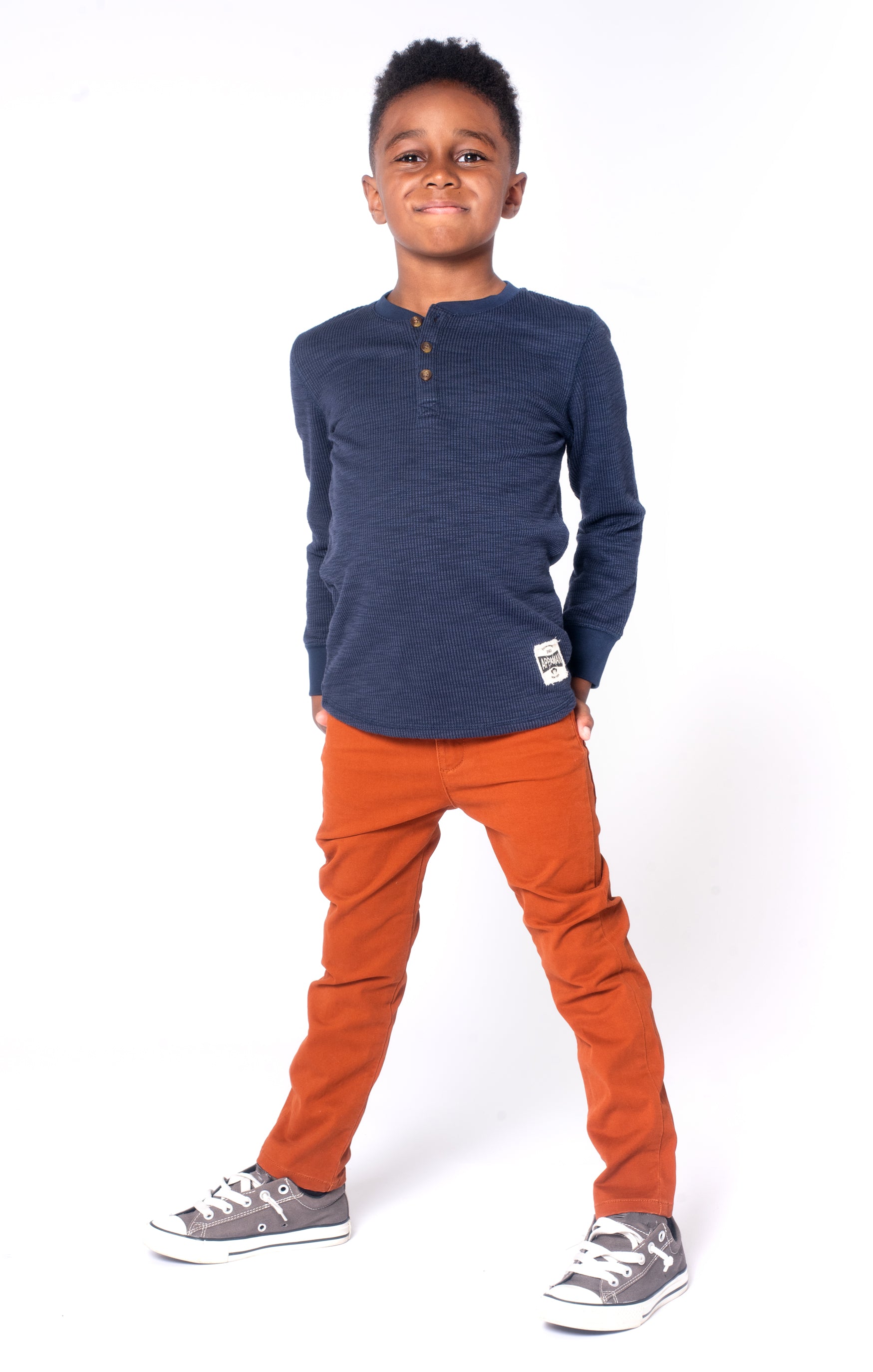 Elevate their everyday style with Appaman's Classic Skinny Twill pants ? a contemporary take on traditional khakis. Crafted from a sturdy cotton fabric, these pants boast a looser, straight cut for a comfortable fit. With a rainbow of colors to choose from, front pockets for added convenience, and an adjustable waistline tucked discreetly inside with buttons and elastic, these pants are both practical and stylish for any occasion.