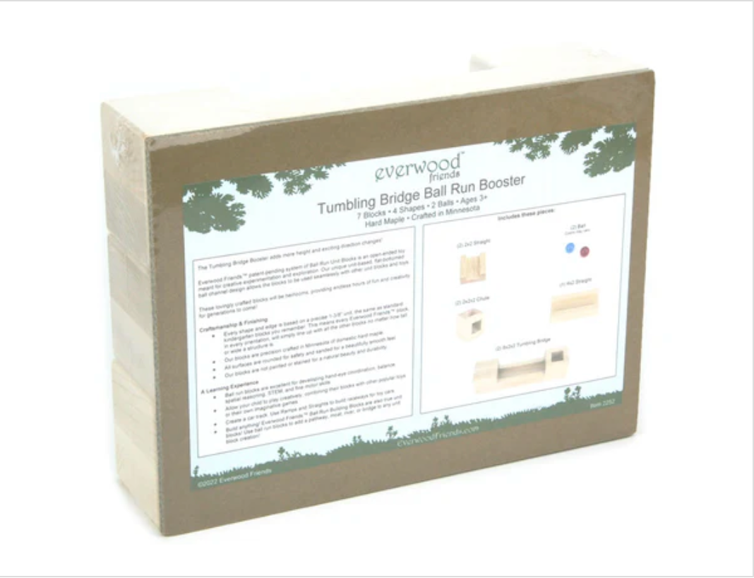 The Everwood Friends 7-Piece Tumbling Bridges Ball Run Booster Set adds thrilling drops, satisfying clacks, and daring little crossings to every ball run adventure. With long tumbling bridge pieces that let balls dip and dash across open spans, this set turns simple builds into heart-fluttering feats of engineering (applause encouraged).