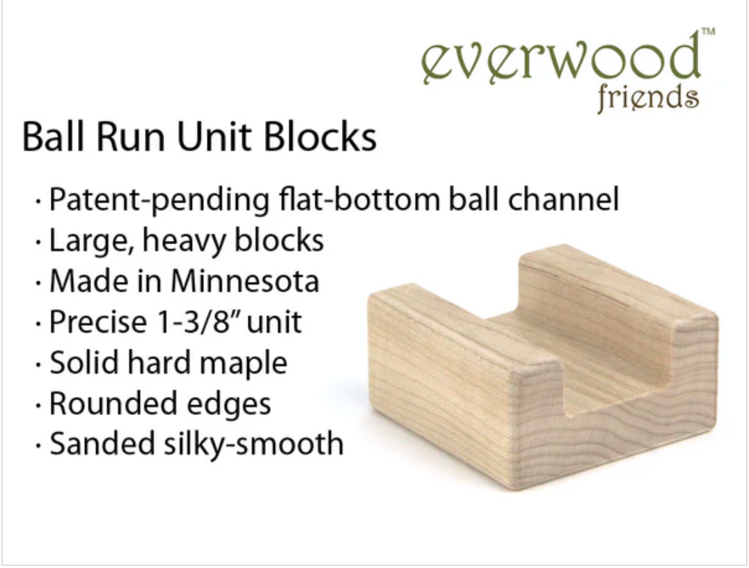 Designed for bold builders and curious creators, these beautifully balanced pieces invite experimentation from the very first drop. Balls race across bridges, disappear down chutes, and reappear exactly where your little architect planned—thanks to Everwood Friends’ precise unit geometry and flat-bottomed channel design. Every piece aligns effortlessly with existing ball runs and classic unit blocks, making expansions feel seamless and endlessly replayable.