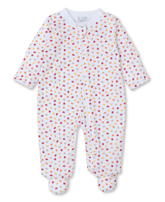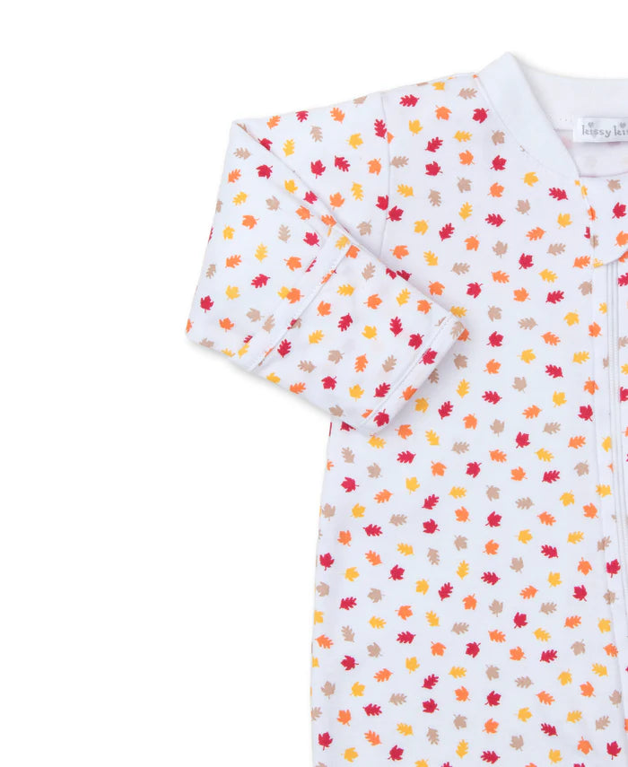 Cozy up your little one in our ultra-soft Pima cotton footie sprinkled with charming autumn leaves. The convenient front zipper makes it easy to slip on, perfect for snuggling through the Fall season. This little piece will definitely make you fall in love with autumn!