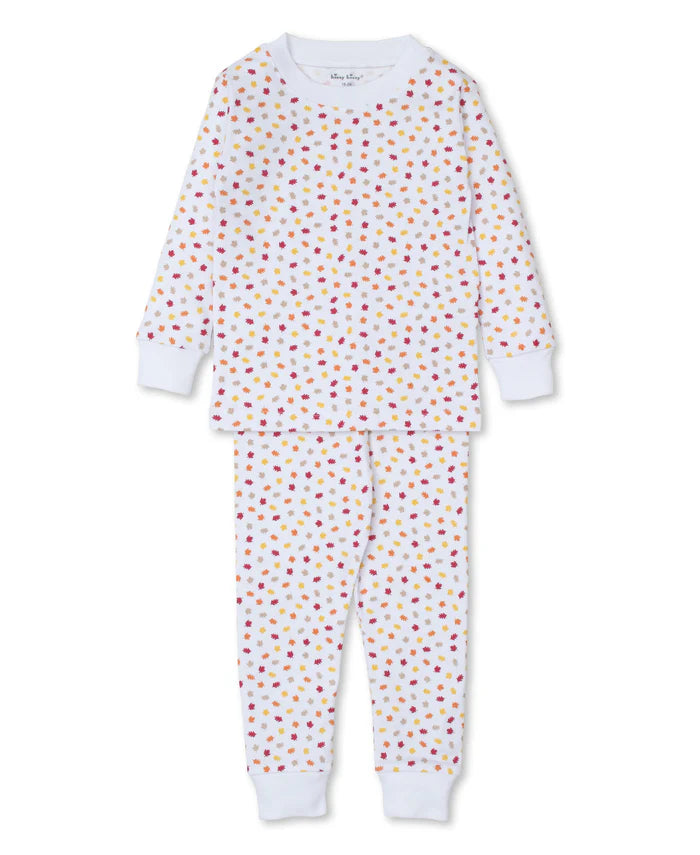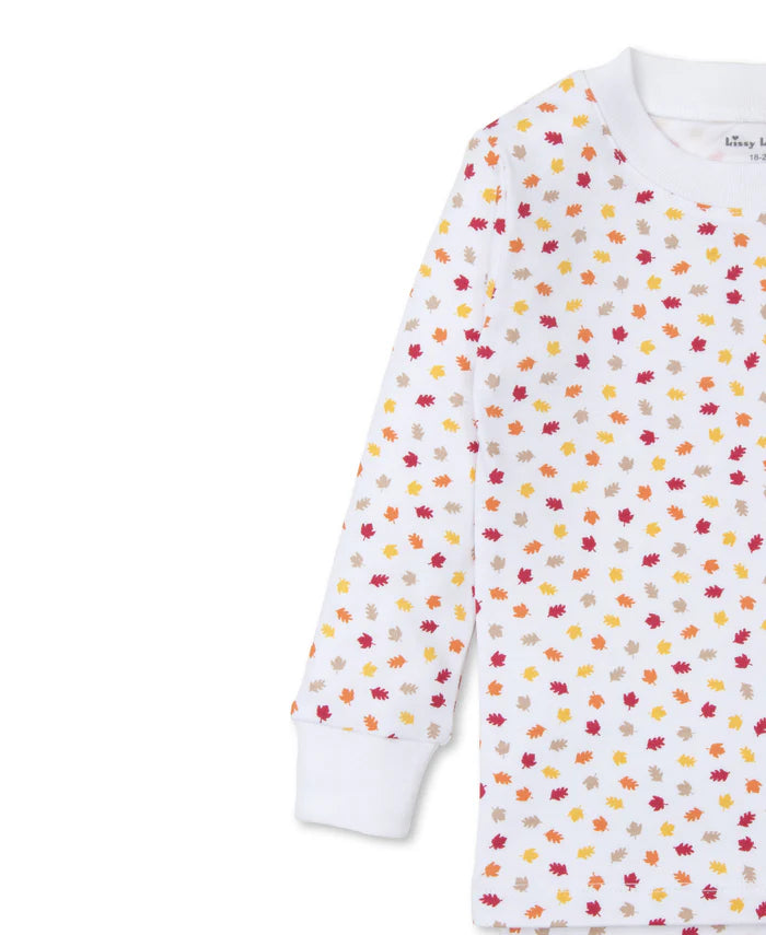 Get ready for bedtime fun with our Turkey Time Leaves PJ Set. Made from ultra-soft Pima cotton, your little one will drift into dreamland comfortably. Featuring a playful autumn leaves pattern, this two piece set is perfect for a good night's sleep. Made in Peru, and machine washable for convenience. (Gobble gobble!)