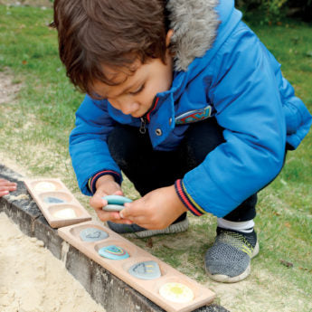 These engaging and tactile weather stones can be used in so many ways: record the weather, make a forecast, sort by the different conditions, press into playdough or create stories alongside other props. Made from a unique stone mix, the symbols are robust enough to be used outside, whatever the weather! Includes ten stones engraved and painted with the following representations: dark cloud, light cloud, hail, rain, rainbow, snow, sun, sunny intervals, thunderstorm, and wind. Each stone measures between 1½-2¼” high. Safe for 2+.
