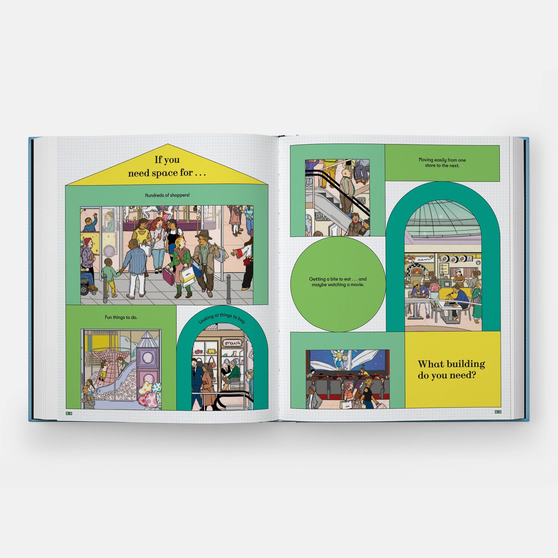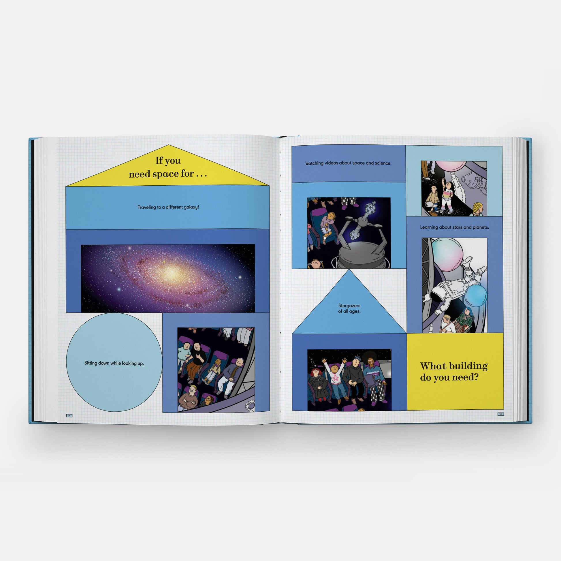 What kind of building do you need for students, teachers, and learning about science, history, and art? A school! ✏️🏫 Each spread offers thoughtful clues, then opens up to show how architects design spaces—from planetariums and aquariums to airports, supermarkets, and shopping malls—to best serve the people who use them.