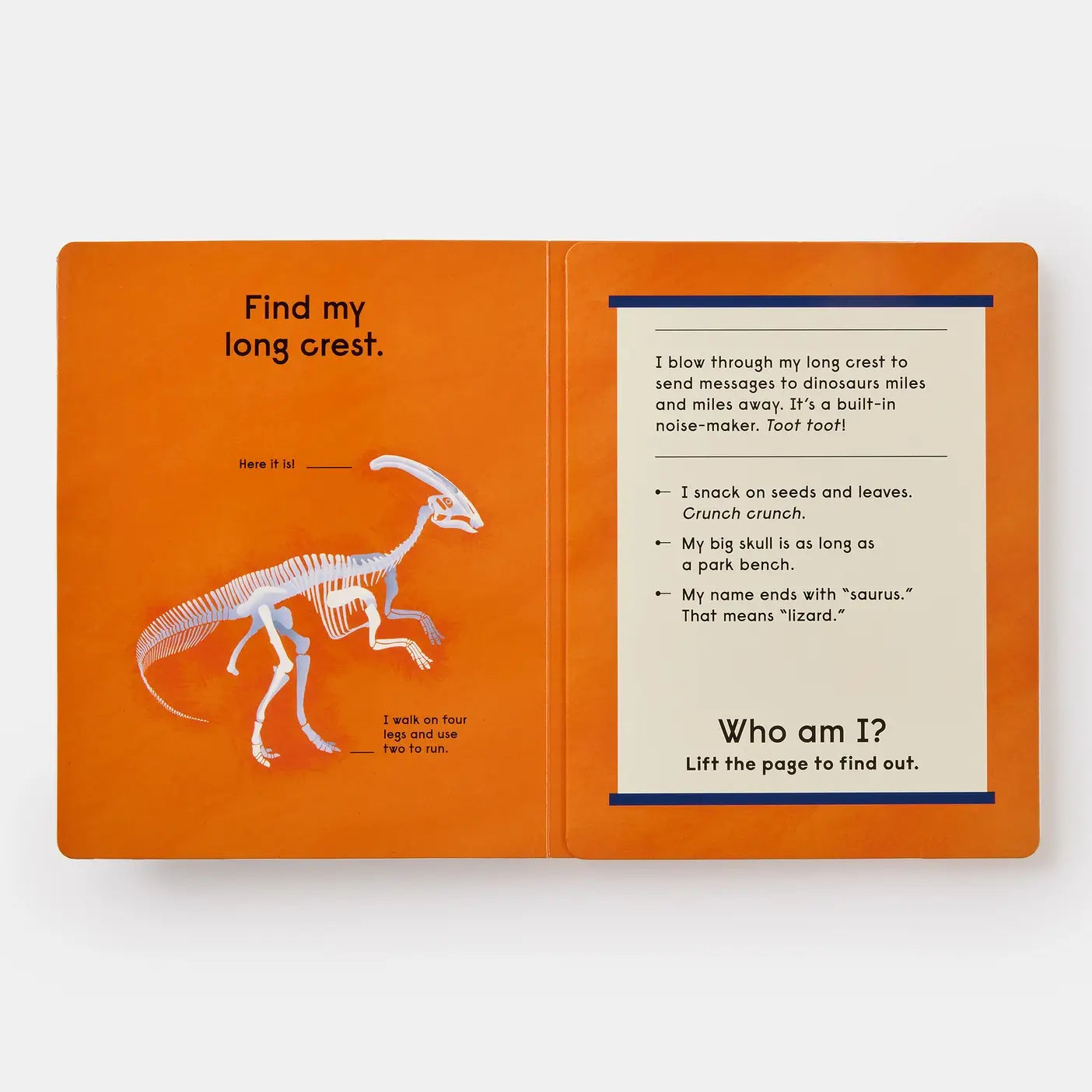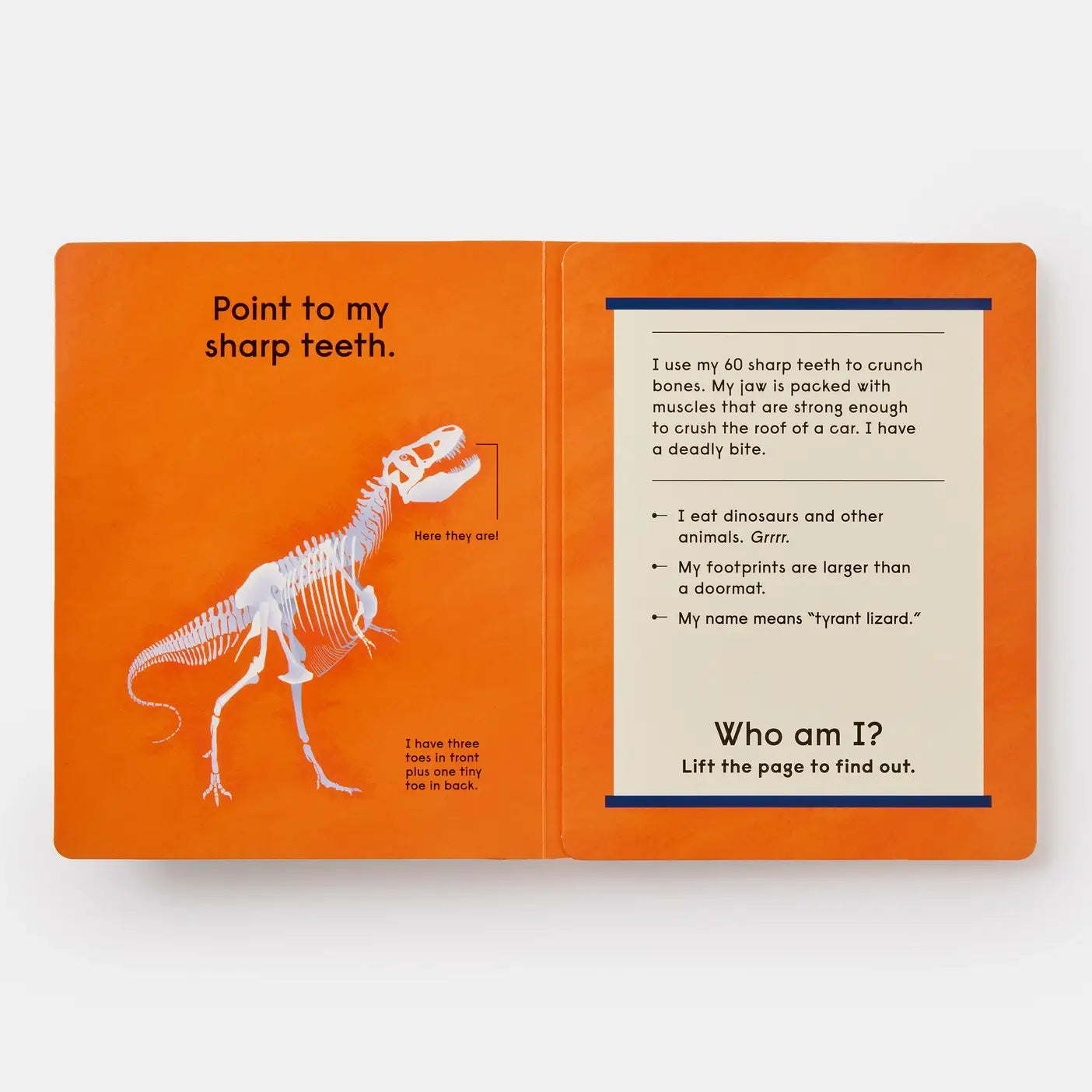 With each turn of the page, little readers are introduced to a mysterious skeleton—encouraged to look closely, wonder, and guess which dinosaur it might be. Then comes the magic moment… a vibrant foldout reveal that brings the dinosaur to life, along with a simple, engaging explanation of what made it so special. 🦴✨